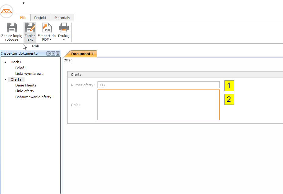 1. Numer oferty - kolejny numer oferty, pole to jest drukowane na ofercie