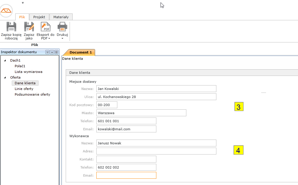 4. Wykonawca - sekcja z danymi wykonawcy dachu